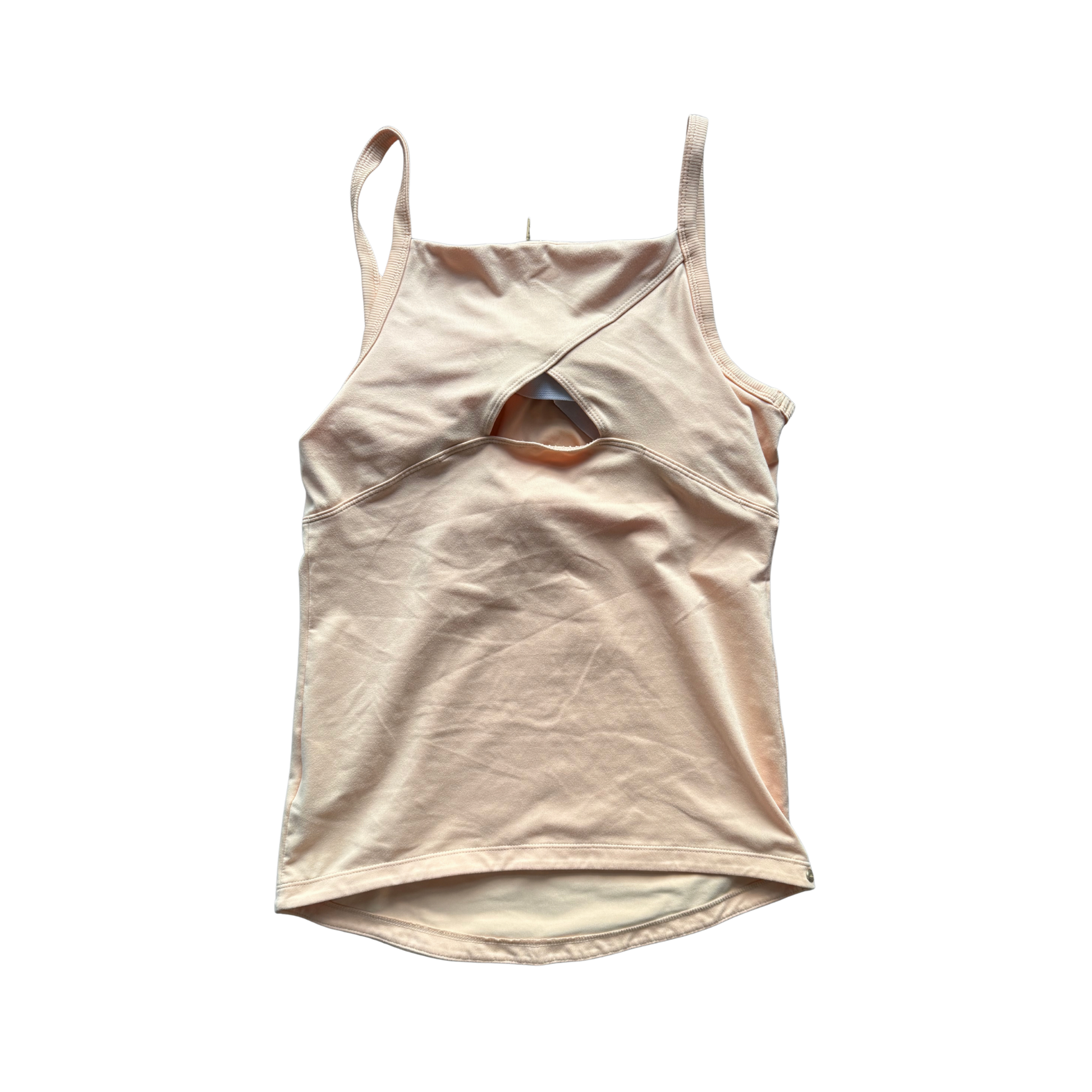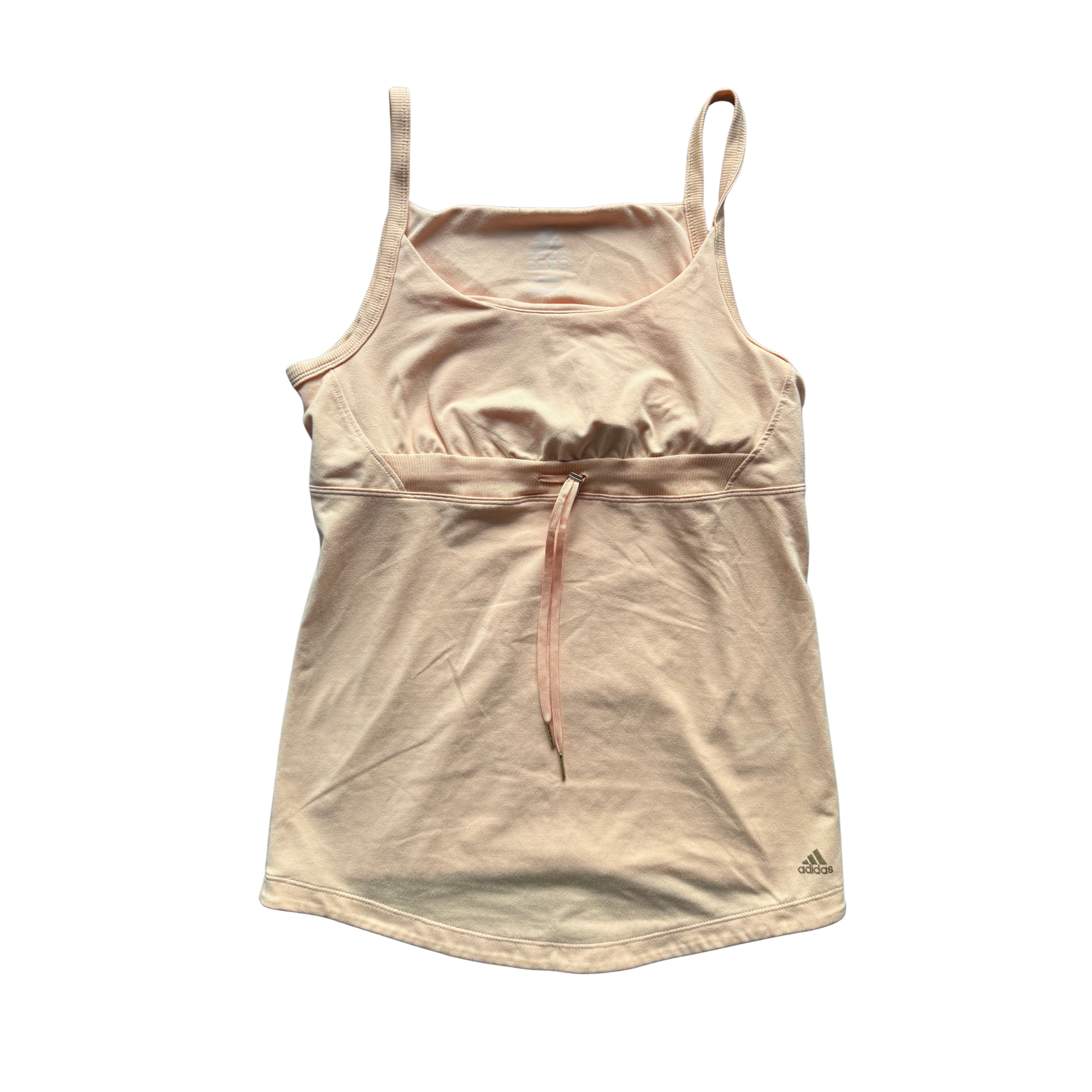 Vintage Adidas workout top in an orange-yellow colorway with a tie detail at the bra band and a built-in bra.
