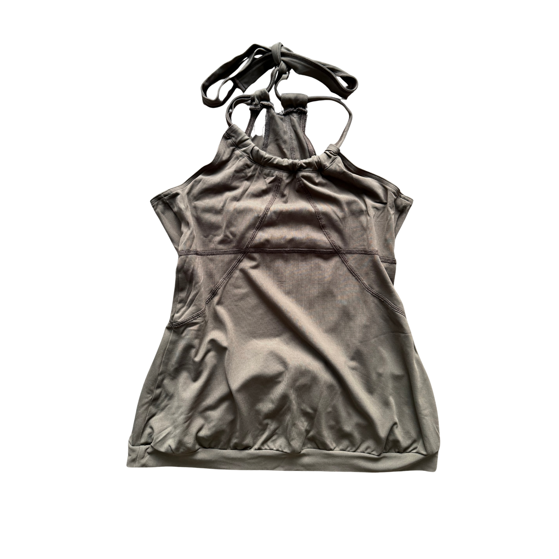 Vintage Casall halterneck top in an army green colorway with an adjustable neck tie.