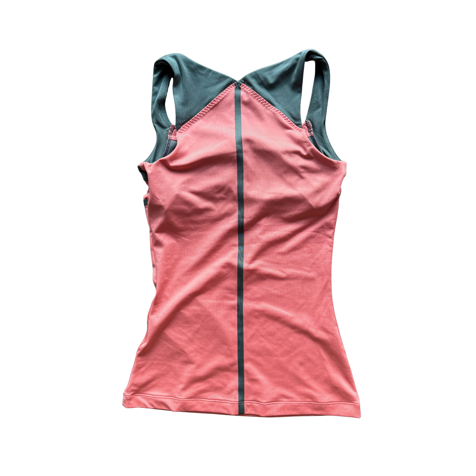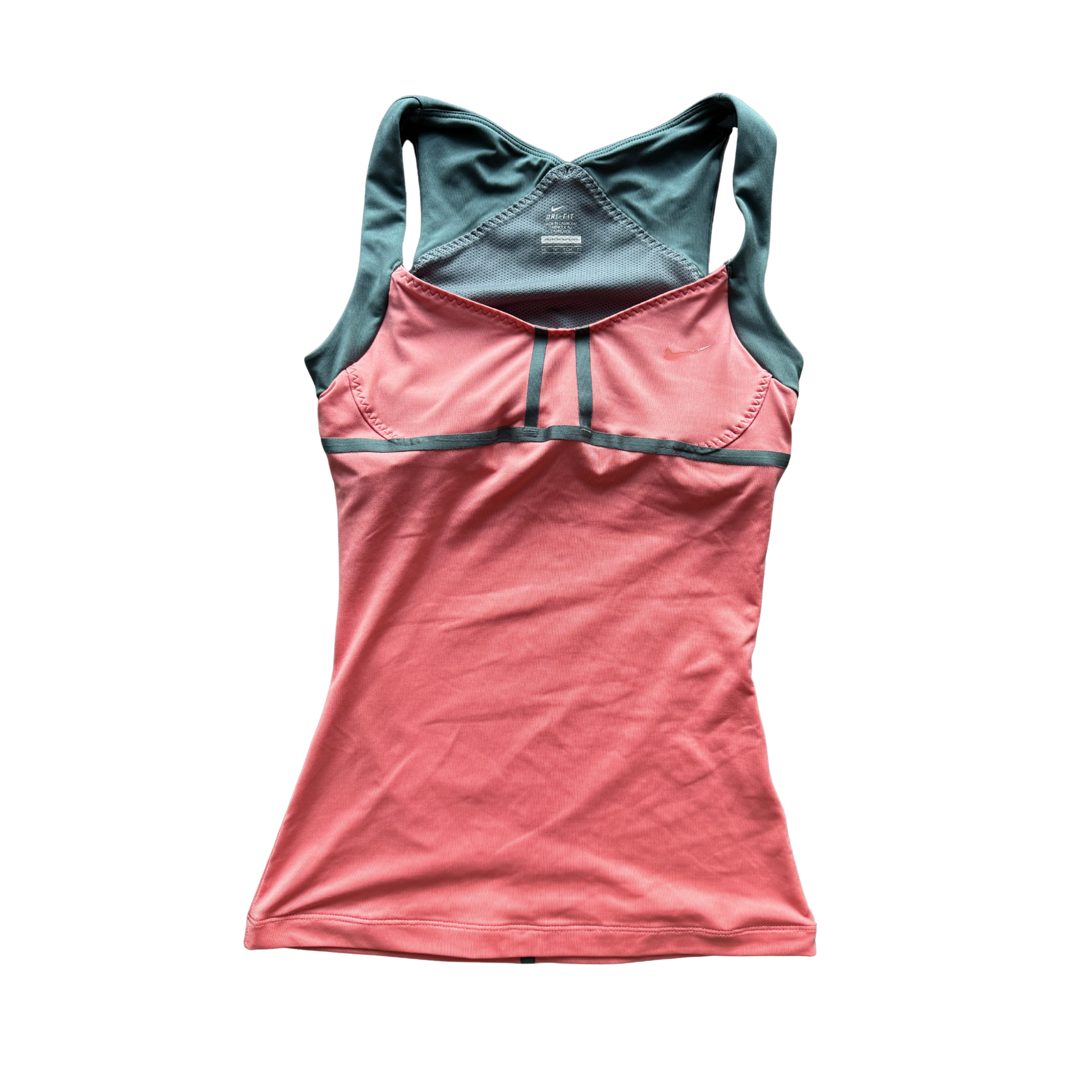 Vintage Nike tank top in a peach colorway with dark grey detailing. Features an internal support band.